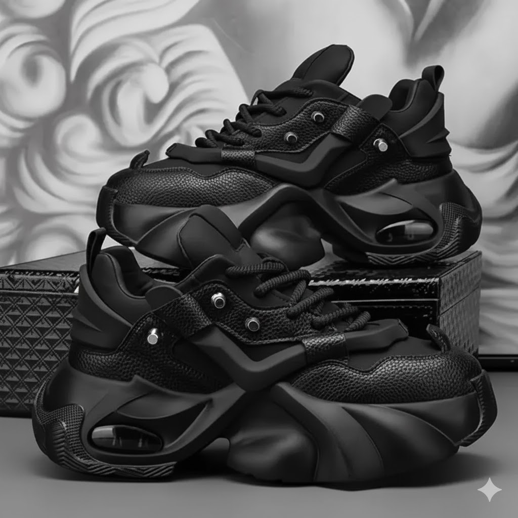 Sleek black casual sneakers with a premium finish, textured side design, and cushioned comfort. Perfect for everyday wear with a stylish and durable sole.